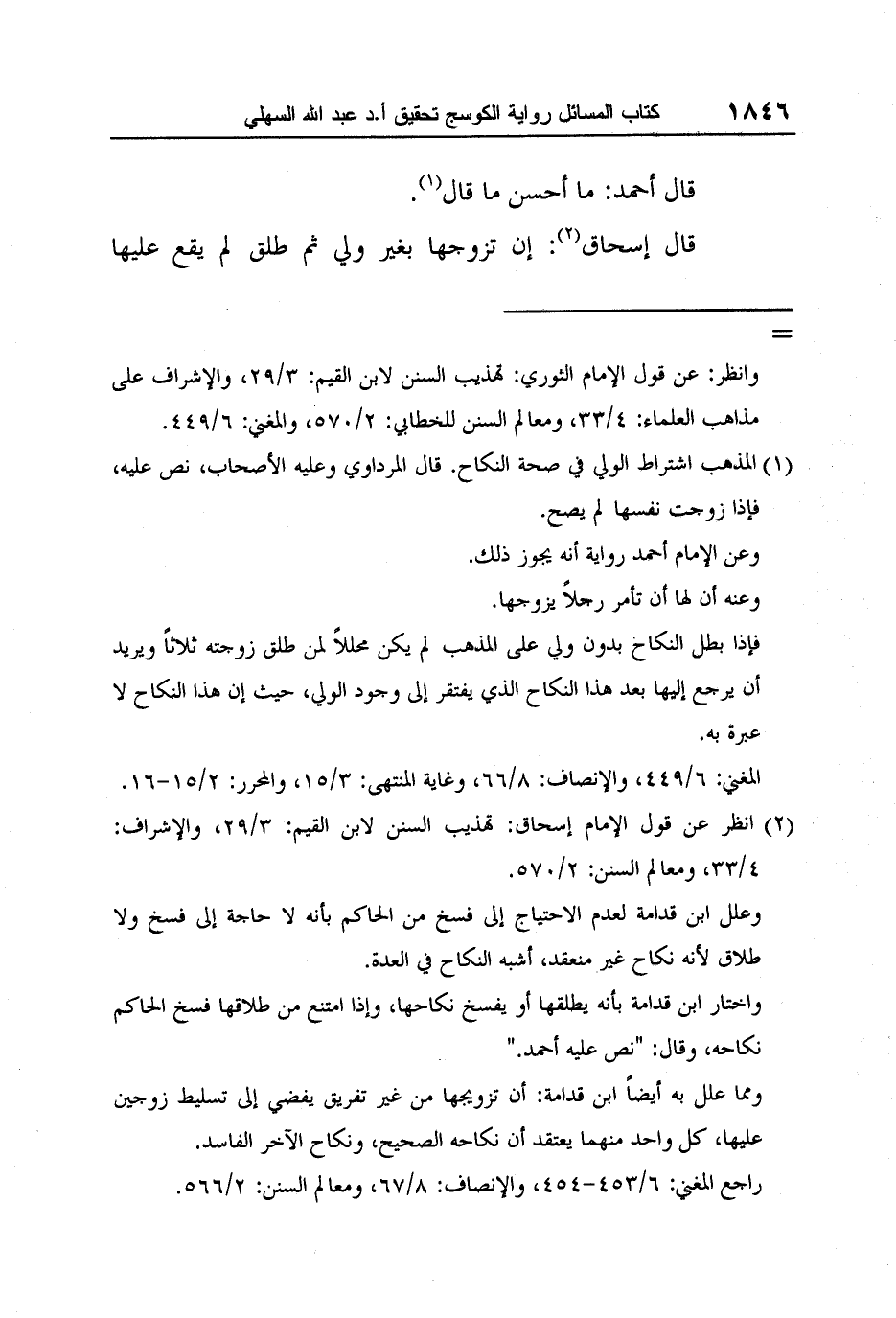 [] راجع المغني: 6/453-454, والإنصاف: 8/67, ومعالم السنن: 2/566.