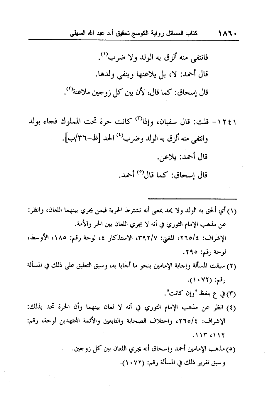 4 انظر عن مذهب الإمام الثوري في أنه لا لعان بينهما وأن الحرة تحد بذلك: الإشراف: 4/265, واختلاف الصحابة والتابعين والأئمة المجتهدين لوحة، رقم: 112, 113.