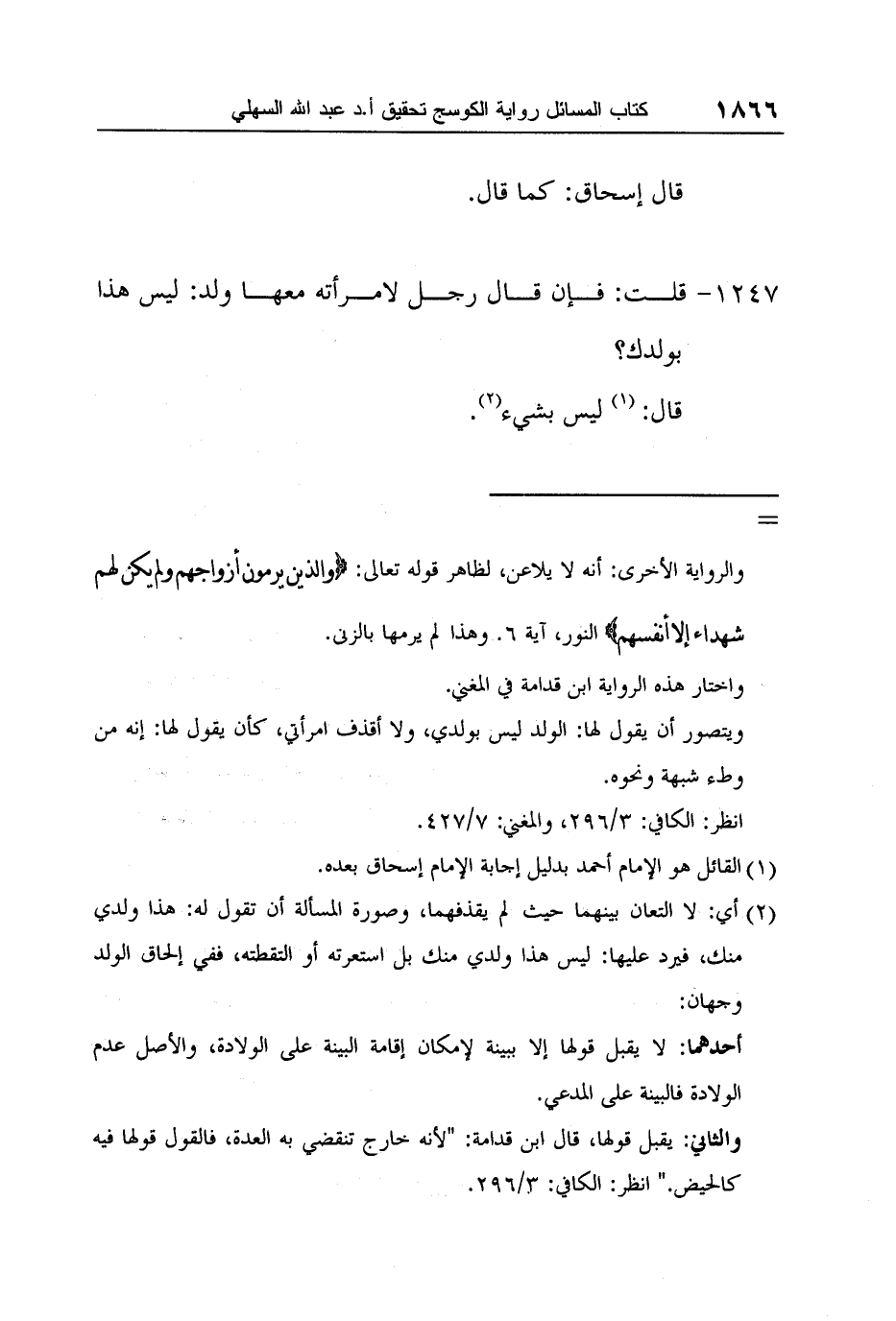 1 القائل هو الإمام أحمد بدليل إجابة الإمام إسحاق بعده.