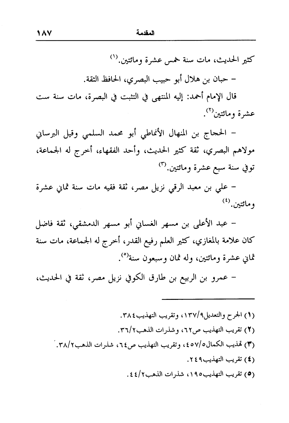 3 تهذيب الكمال5/457، وتقريب التهذيب ص64، شذرات الذهب2/38.