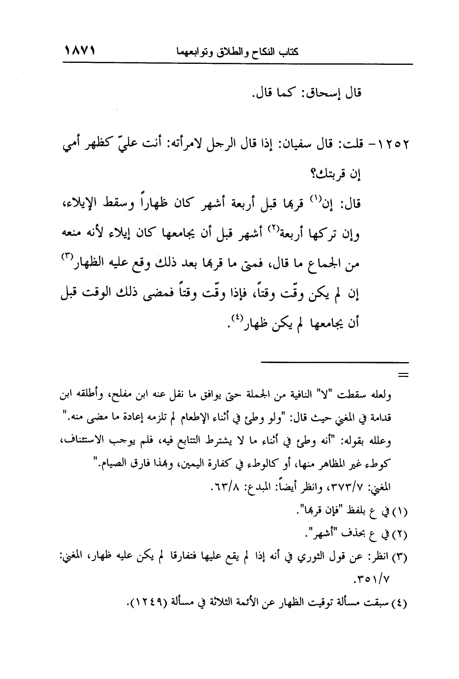 [1252-] قلت: قال سفيان: إذا قال الرجل لامرأته: أنت عليّ كظهر أمي إن قربتك؟