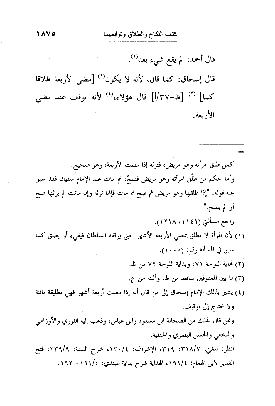 4 يشير بذلك الإمام إسحاق إلى من قال أنه إذا مضت أربعة أشهر فهي تطليقة بائنة ولا تحتاج إلى توقيف.