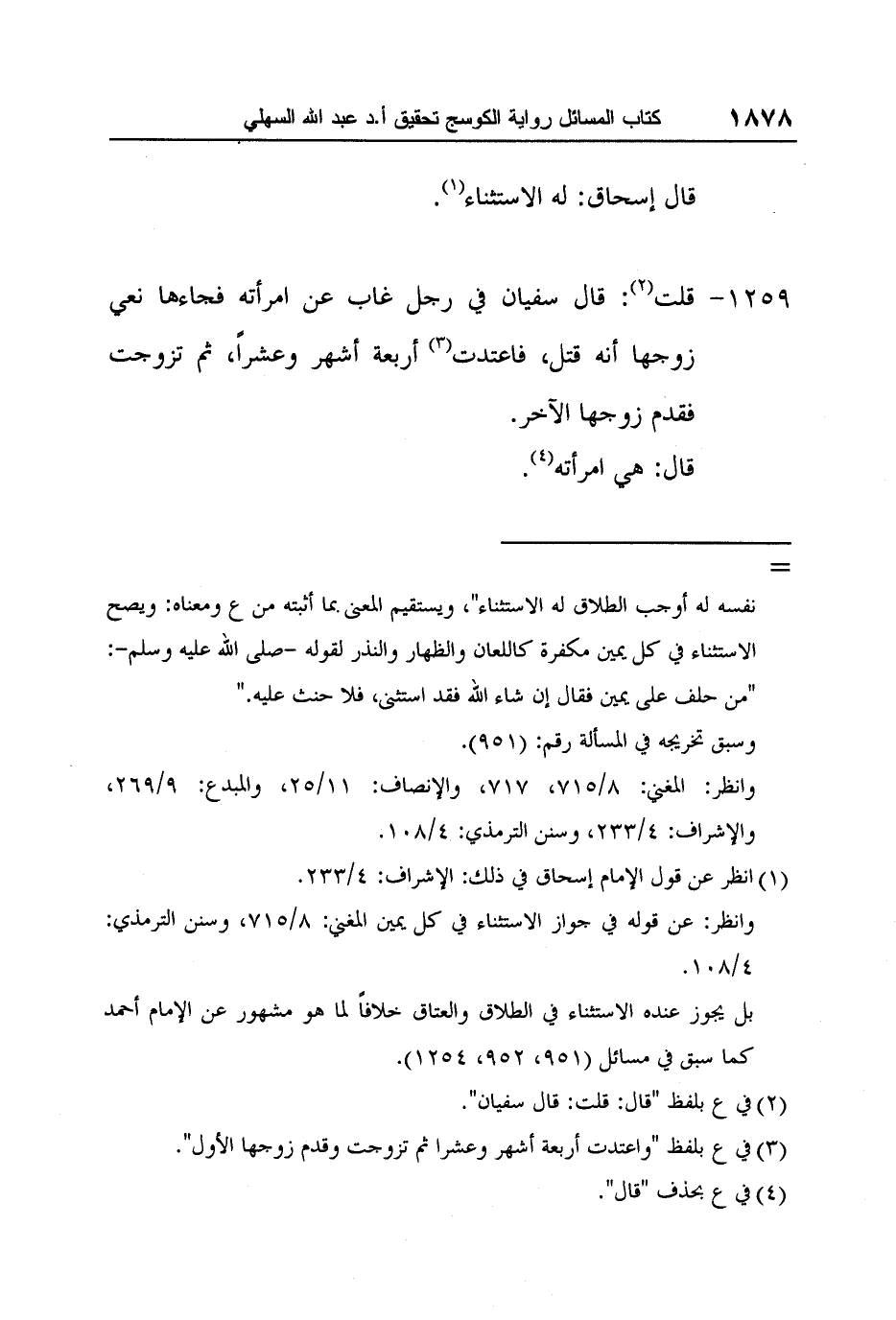1 انظر عن قول الإمام إسحاق في ذلك: الإشراف: 4/233.