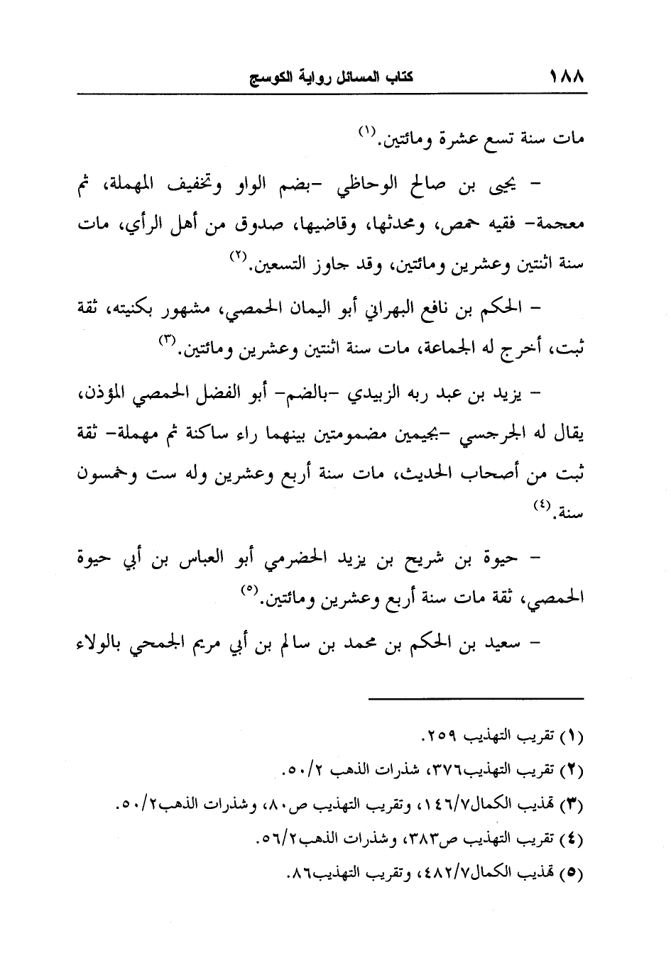 5 تهذيب الكمال7/482، وتقريب التهذيب86.