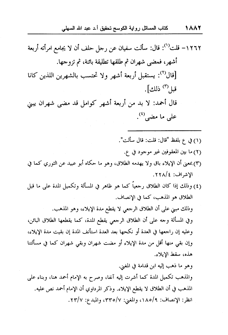 انظر: الإنصاف: 9/185, والمغني: 7/335, والمبدع: 7/23.