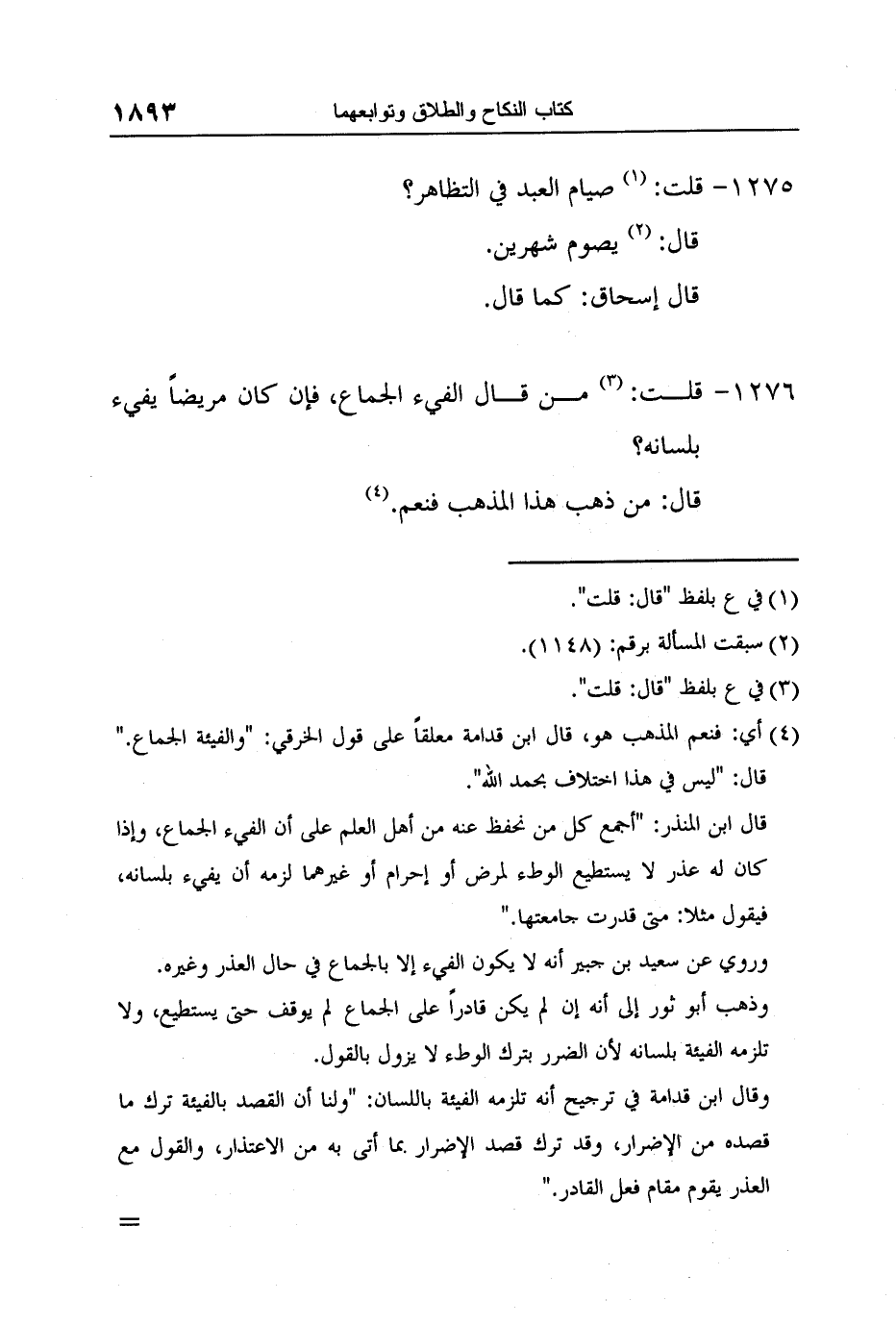 [1276-] قلت: 3 من قال الفيء الجماع، فإن كان مريضاً يفيء بلسانه؟