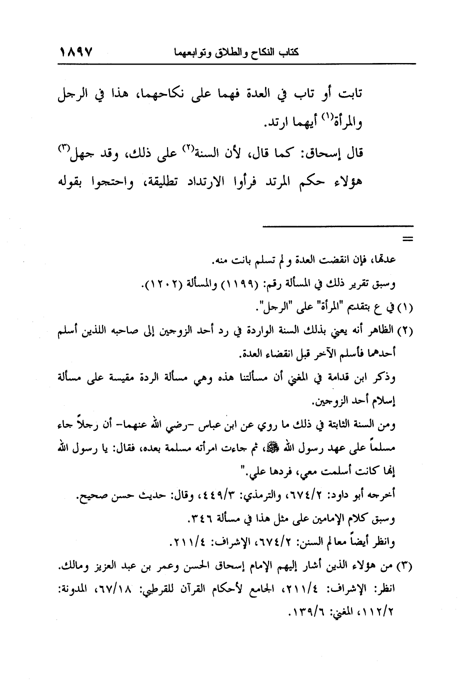 قال إسحاق: كما قال, لأن السنة2 على ذلك، وقد جهل3 هؤلاء حكم المرتد فرأوا الارتداد تطليقة, واحتجوا بقوله