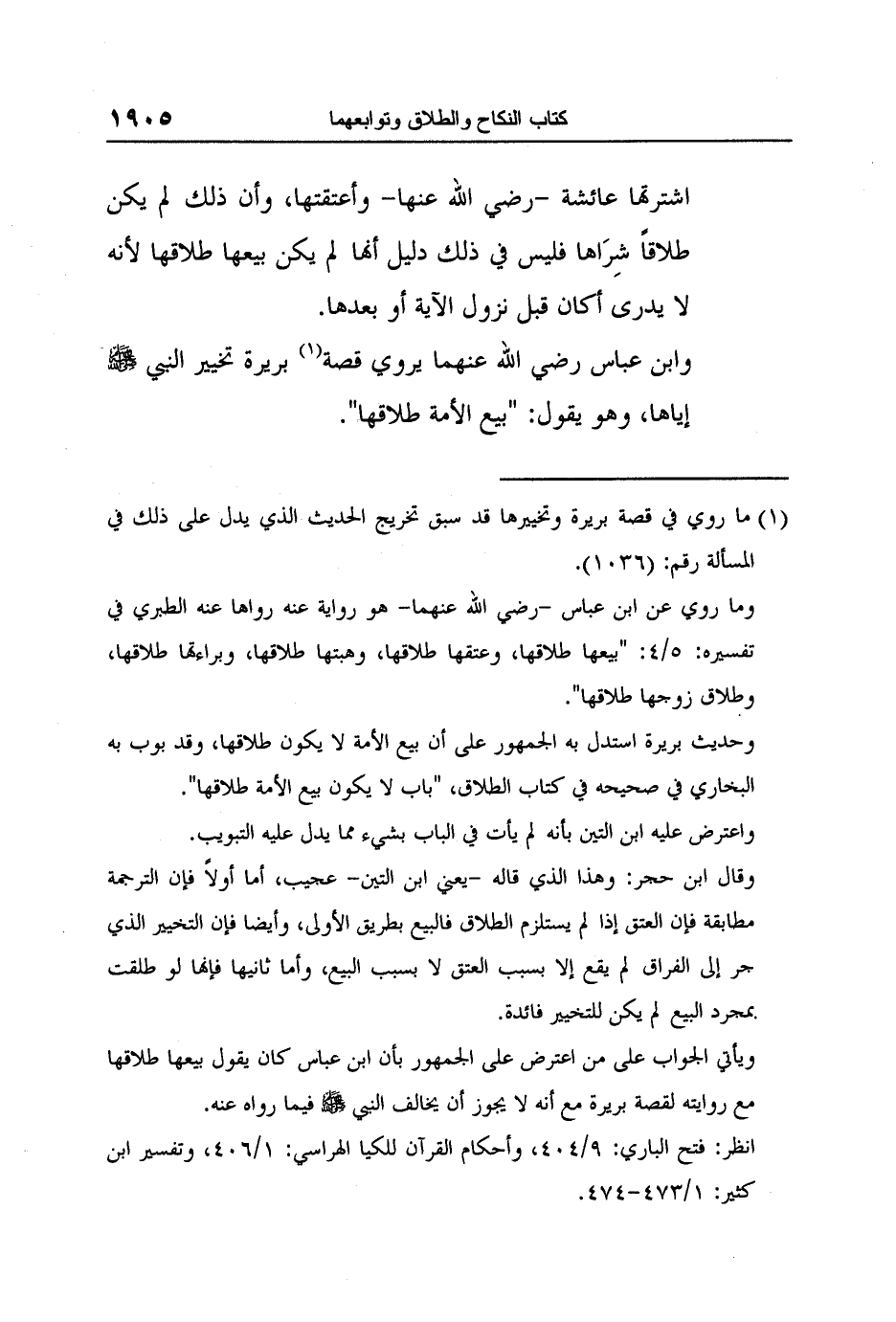 وابن عباس رضي الله عنهما يروي قصة1 بريرة تخيير النبي صلى الله عليه وسلم إياها, وهو يقول: "بيع الأمة طلاقها".