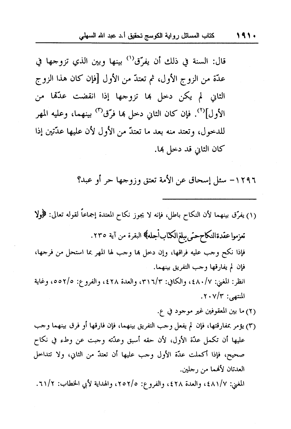 [1296-] سئل إسحاق عن الأمة تعتق وزوجها حر أو عبد؟