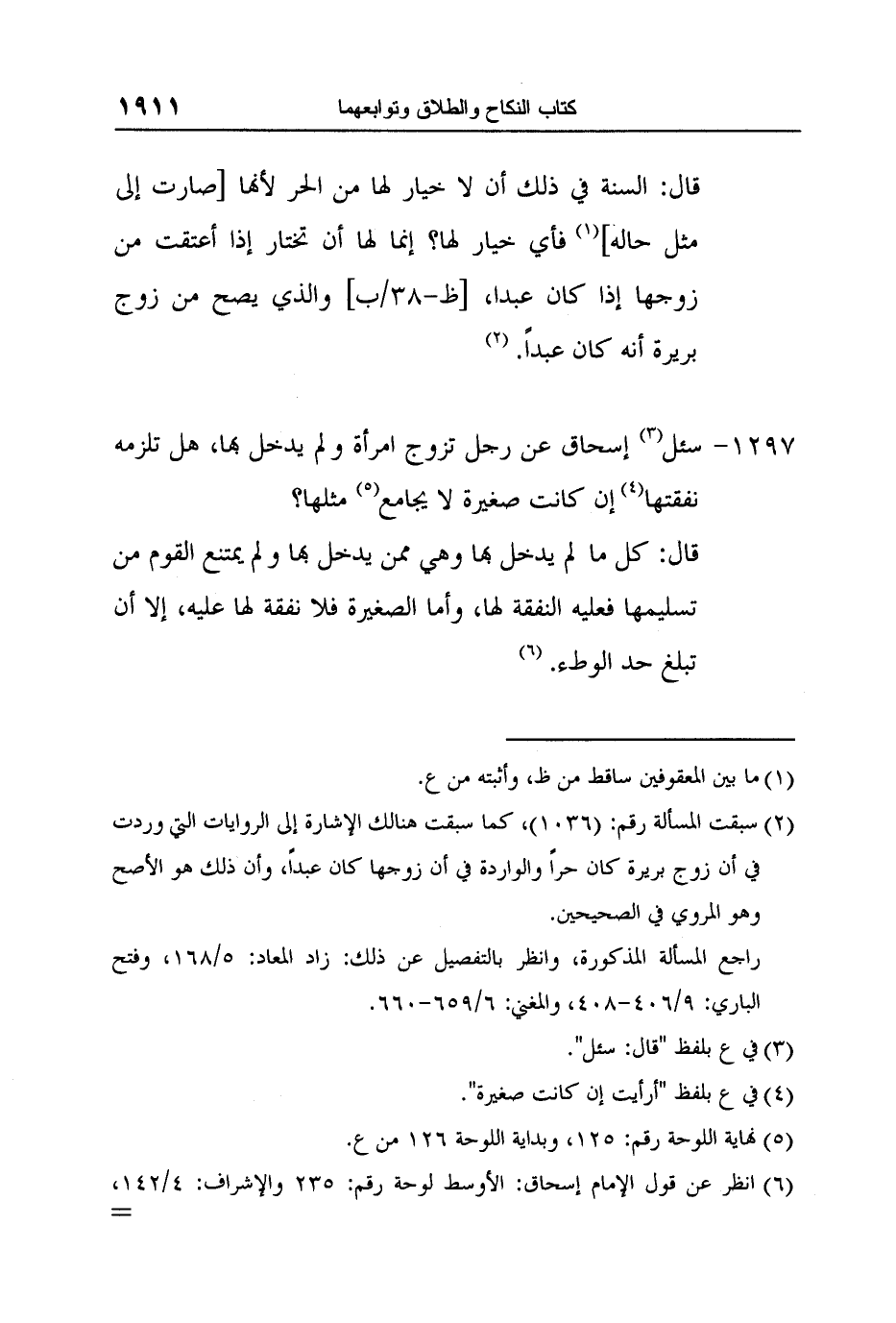 6 انظر عن قول الإمام إسحاق: الأوسط لوحة رقم: 235 والإشراف: 4/142, والمغني: 7/601.