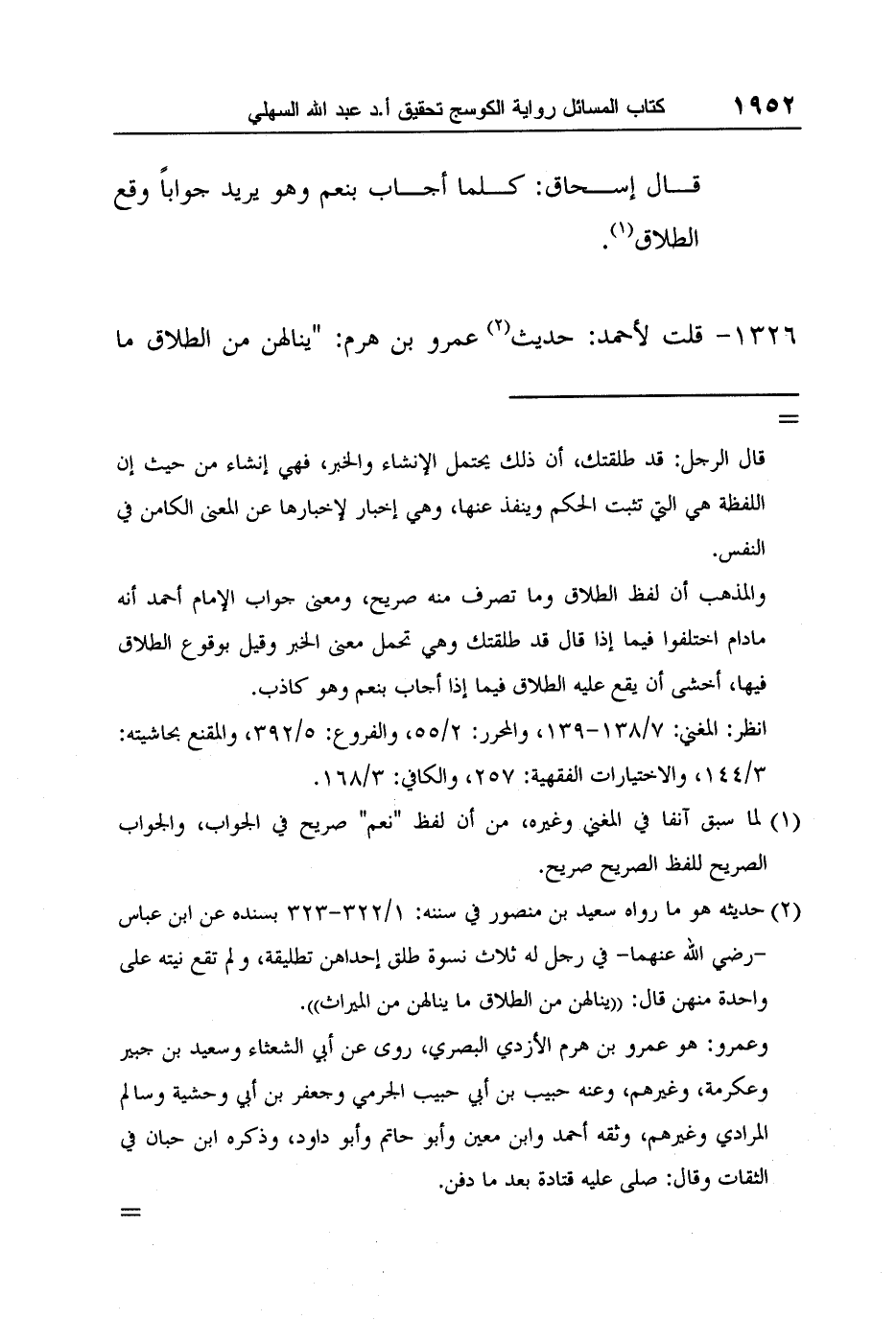 [1326-] قلت لأحمد: حديث2 عمرو بن هرم: "ينالهن من الطلاق ما