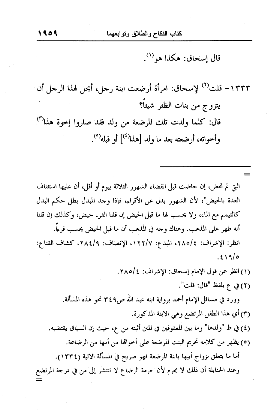 أما ما يتعلق بزواج أبيها بابنة المرضعة فهو صريح في المسألة الآتية (1334) .