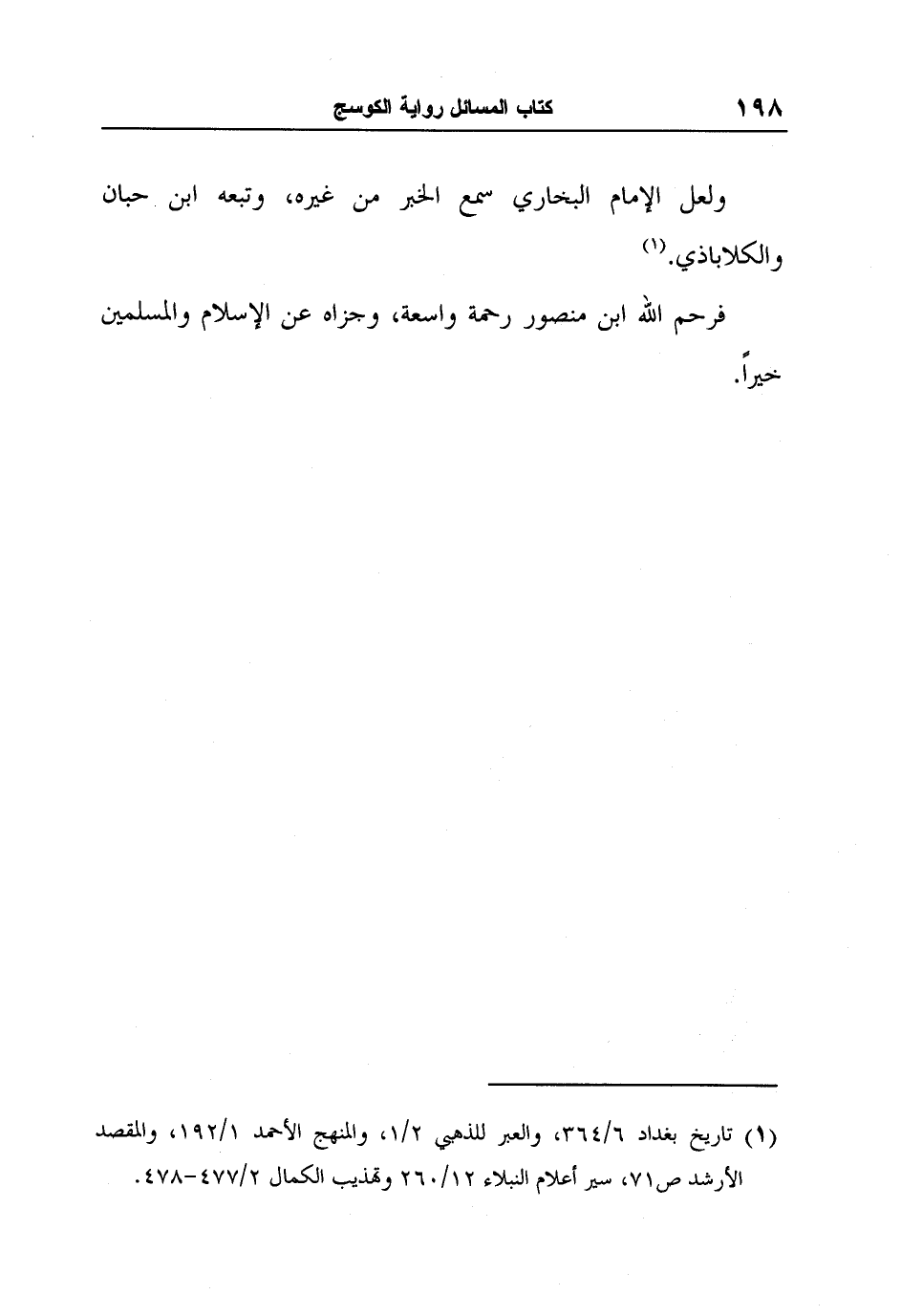 فرحم الله ابن منصور رحمة واسعة، وجزاه عن الإسلام والمسلمين خيراً.