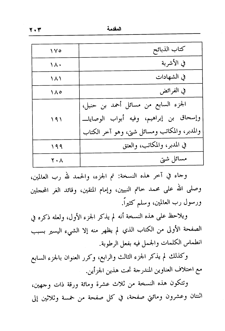 الجزء السابع من مسائل أحمد بن حنبل، وإسحاق بن إبراهيم، وفيه أبواب الوصايا والمدبر، والمكاتب ومسائل شتى، وهو آخر الكتاب ... 191