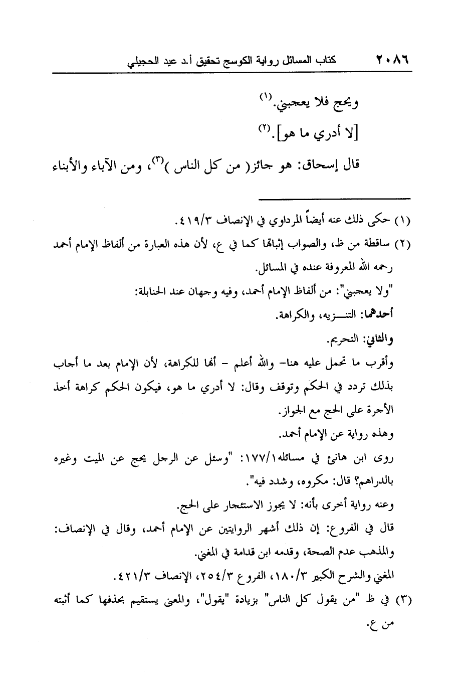2 ساقطة من ظ، والصواب إثباتها كما في ع، لأن هذه العبارة من ألفاظ الإمام أحمد رحمه الله المعروفة عنده في المسائل.
