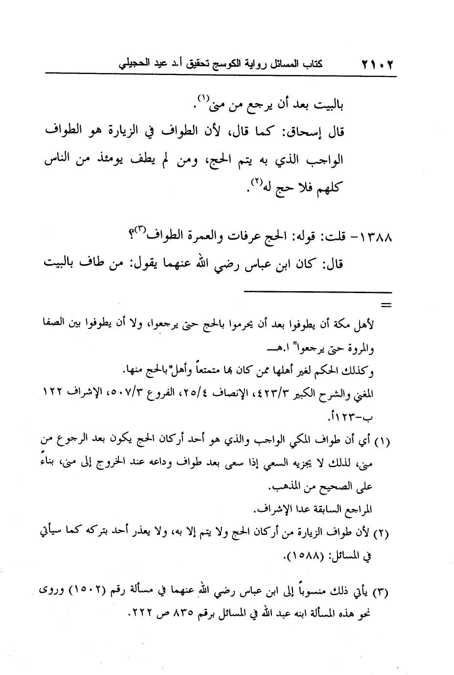 3 يأتي ذلك منسوباً إلى ابن عباس رضي الله عنهما في مسألة رقم (1502) وروى نحو هذه المسألة ابنه عبد الله في المسائل برقم 835 ص 222.
