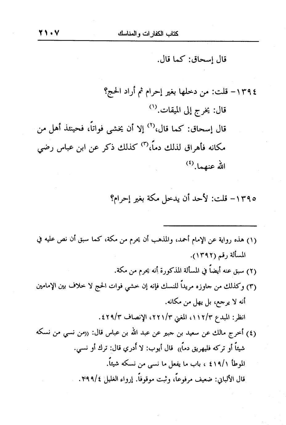 قال إسحاق: كما قال،2 إلا أن يخشى فواتاً، فحينئذ أهل من مكانه فأهراق لذلك دماً،3 كذلك ذكر عن ابن عباس رضي الله عنهما.4
