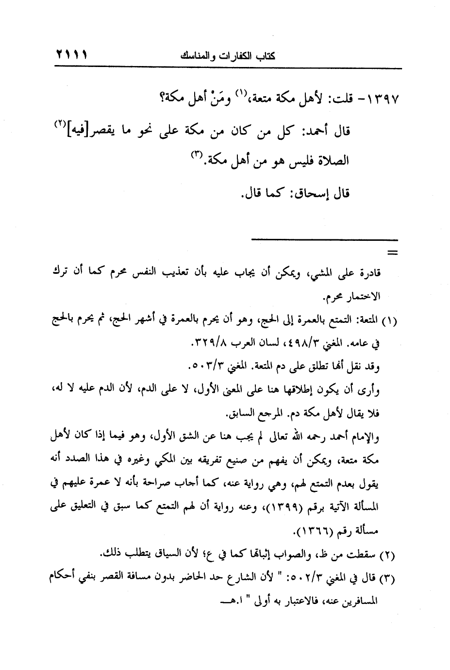 [1397-] قلت: لأهل مكة متعة،1 ومَنْ أهل مكة؟