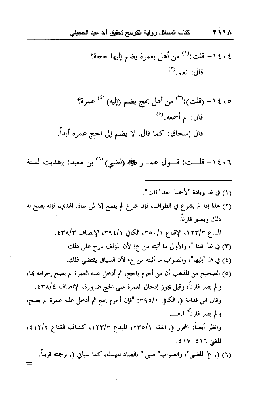 [1405-] (قلت) :3 من أهل بحج يضم (إليه) 4 عمرة؟