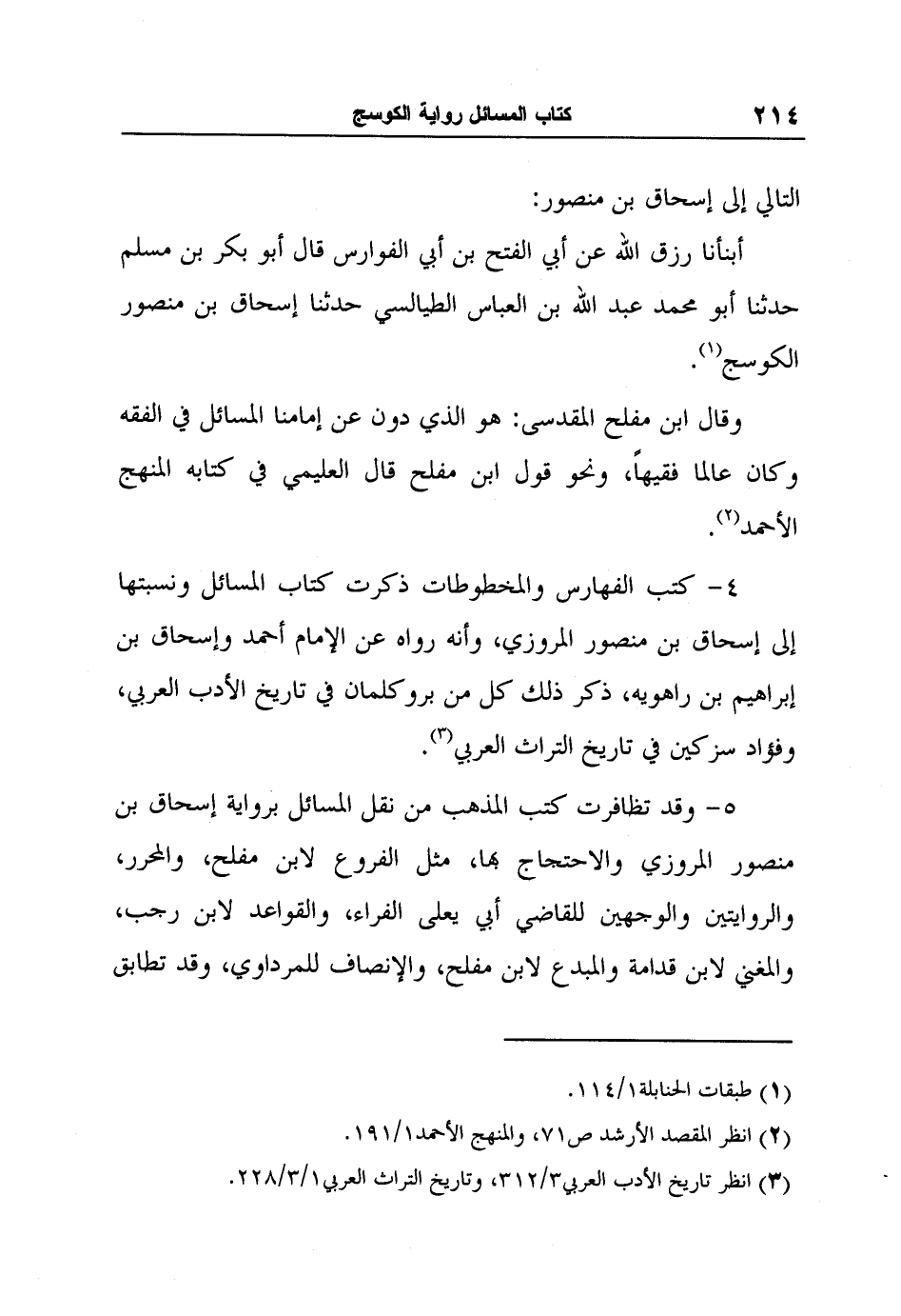 5- وقد تظافرت كتب المذهب من نقل المسائل برواية إسحاق بن منصور المروزي والاحتجاج بها، مثل الفروع لابن مفلح، والمحرر، والروايتين والوجهين للقاضي أبي يعلى الفراء، والقواعد لابن رجب، والمغني لابن قدامة والمبدع لابن مفلح، والإنصاف للمرداوي، وقد تطابق