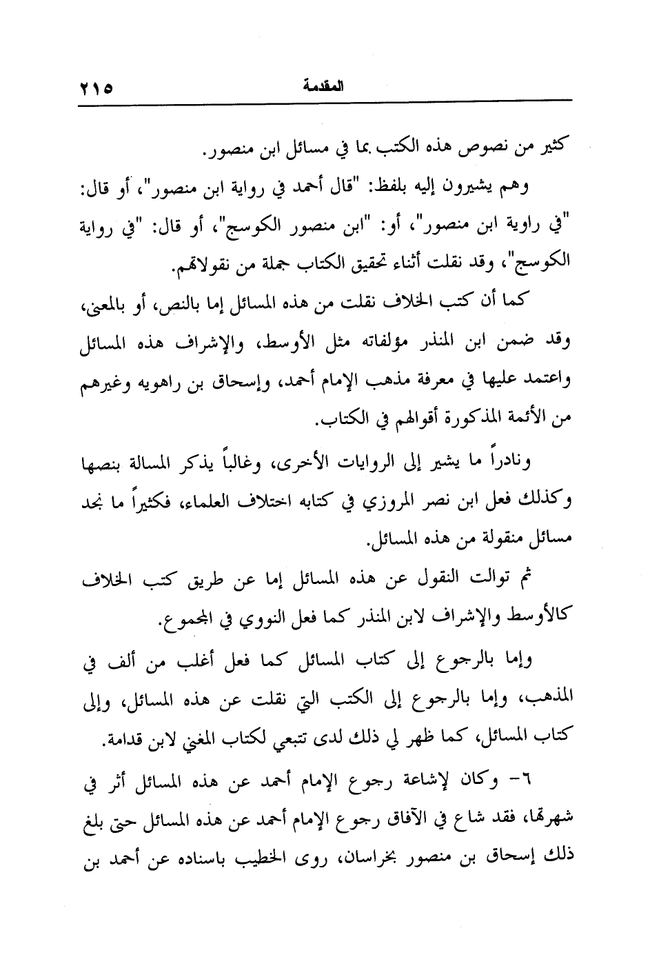 ونادراً ما يشير إلى الروايات الأخرى، وغالباً يذكر المسالة بنصها وكذلك فعل ابن نصر المروزي في كتابه اختلاف العلماء، فكثيراً ما نجد مسائل منقولة من هذه المسائل.