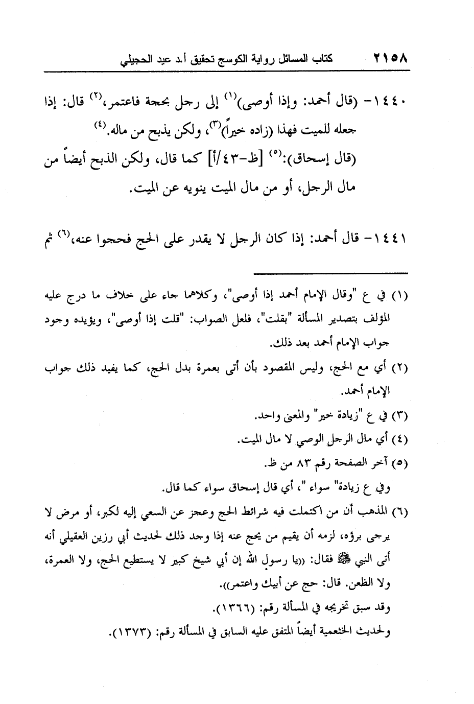 [1441-] قال أحمد: إذا كان الرجل لا يقدر على الحج فحجوا عنه،6 ثم