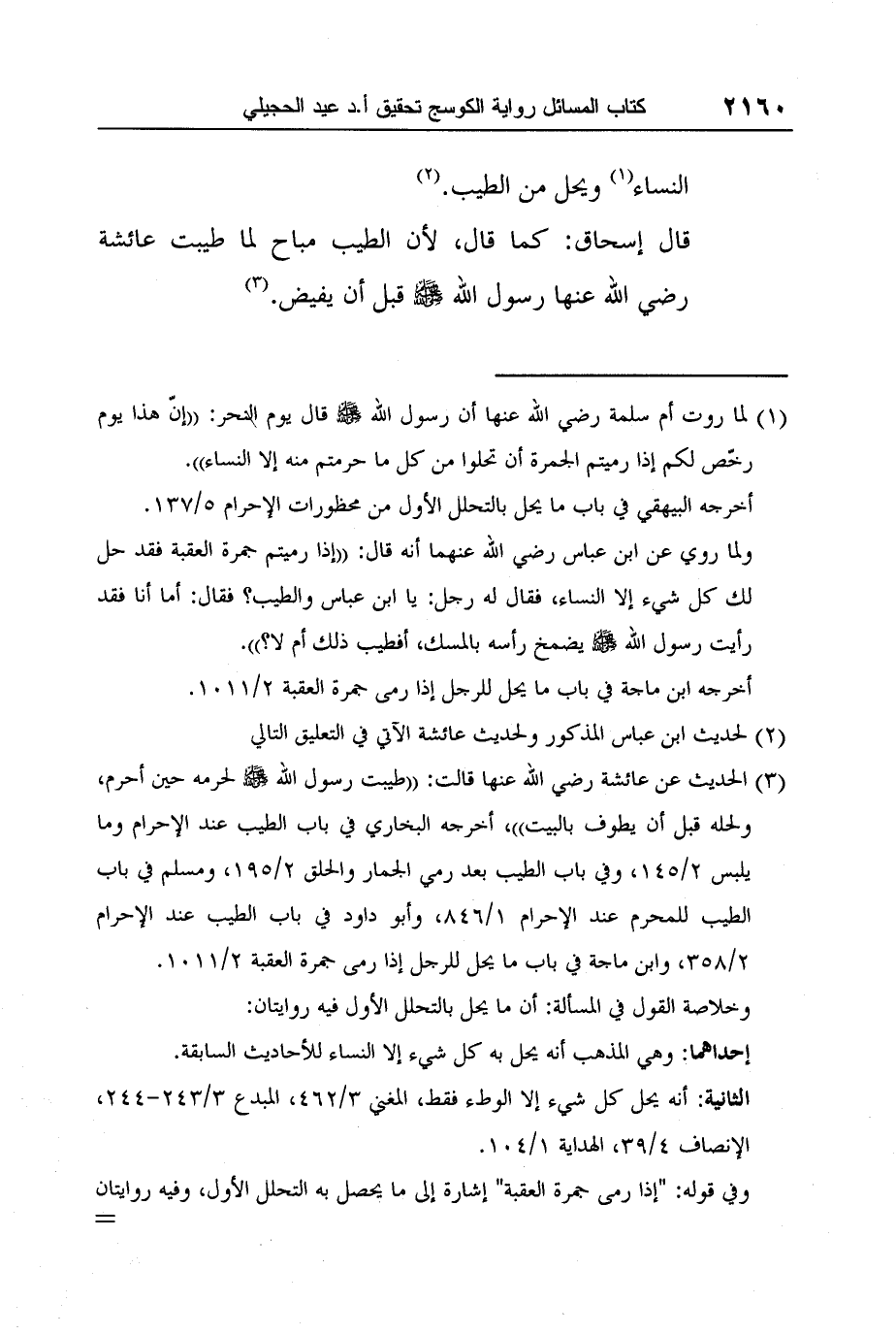 قال إسحاق: كما قال، لأن الطيب مباح لما طيبت عائشة رضي الله عنها رسول الله صلى الله عليه وسلم قبل أن يفيض.3