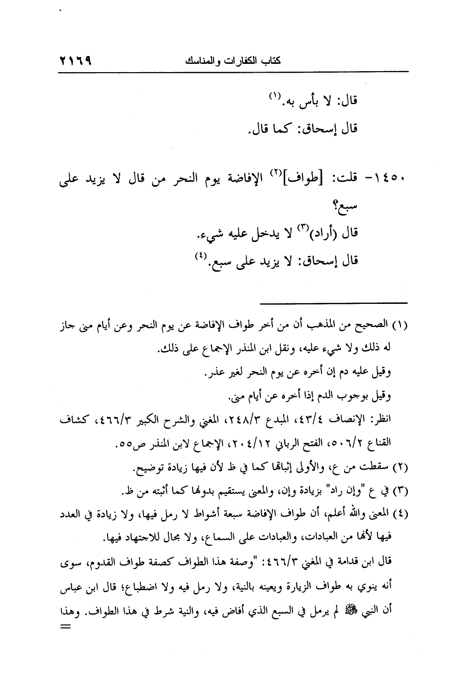 [1450-] قلت: [طواف] 2 الإفاضة يوم النحر من قال لا يزيد على سبع؟