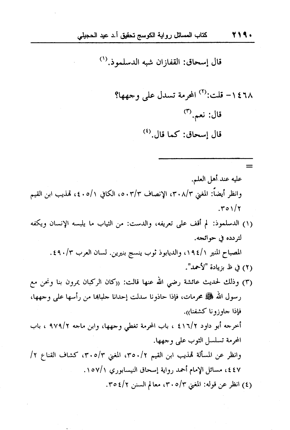وانظر عن المسألة تهذيب ابن القيم 2/350، المغني 3/305، كشاف القناع 2/447، مسائل الإمام أحمد رواية إسحاق النيسابوري 1/157.