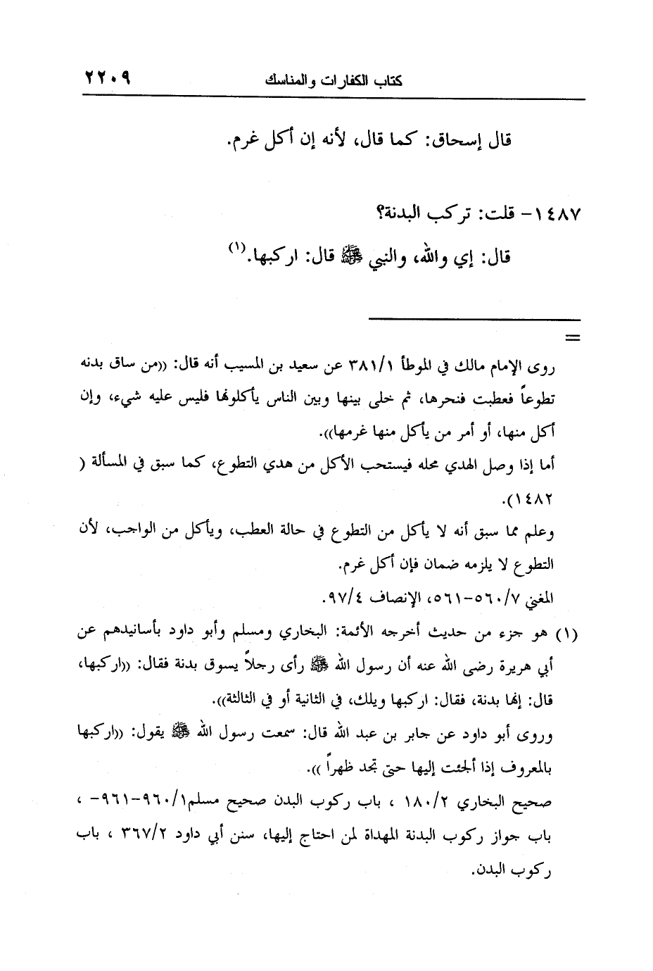 1 هو جزء من حديث أخرجه الأئمة: البخاري ومسلم وأبو داود بأسانيدهم عن أبي هريرة رضى الله عنه أن رسول الله صلى الله عليه وسلم رأى رجلاً يسوق بدنة فقال: "اركبها، قال: إنها بدنة، فقال: اركبها ويلك، في الثانية أو في الثالثة".