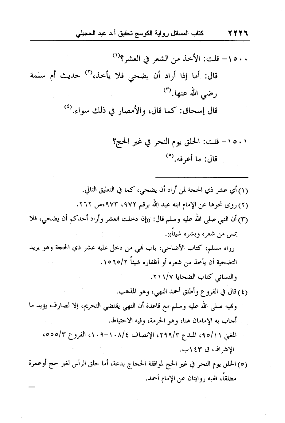 5 الحلق يوم النحر في غير الحج لموافقة الحجاج بدعة، أما حلق الرأس لغير حج أوعمرة مطلقاً، ففيه روايتان عن الإمام أحمد.