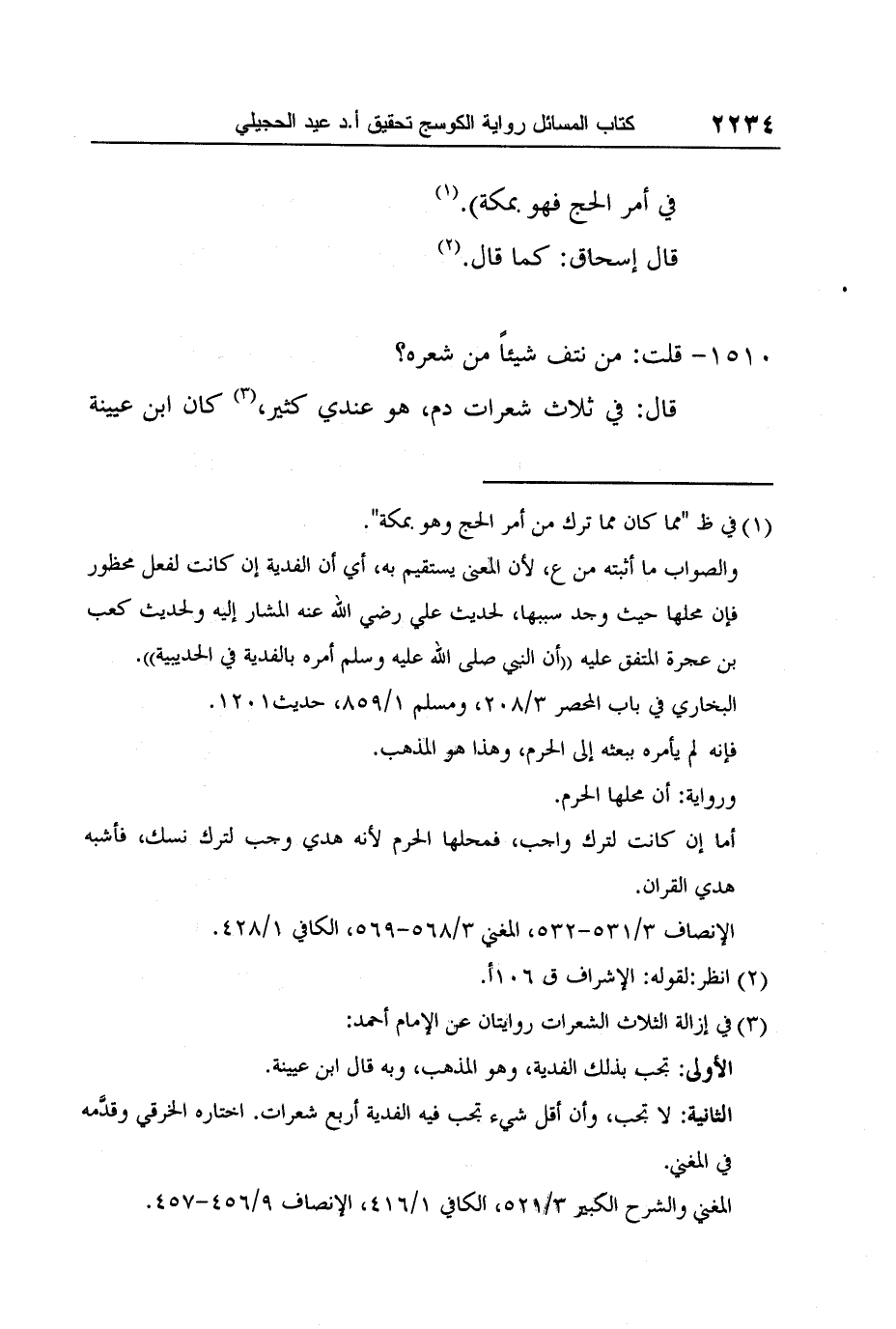 3 في إزالة الثلاث الشعرات روايتان عن الإمام أحمد: