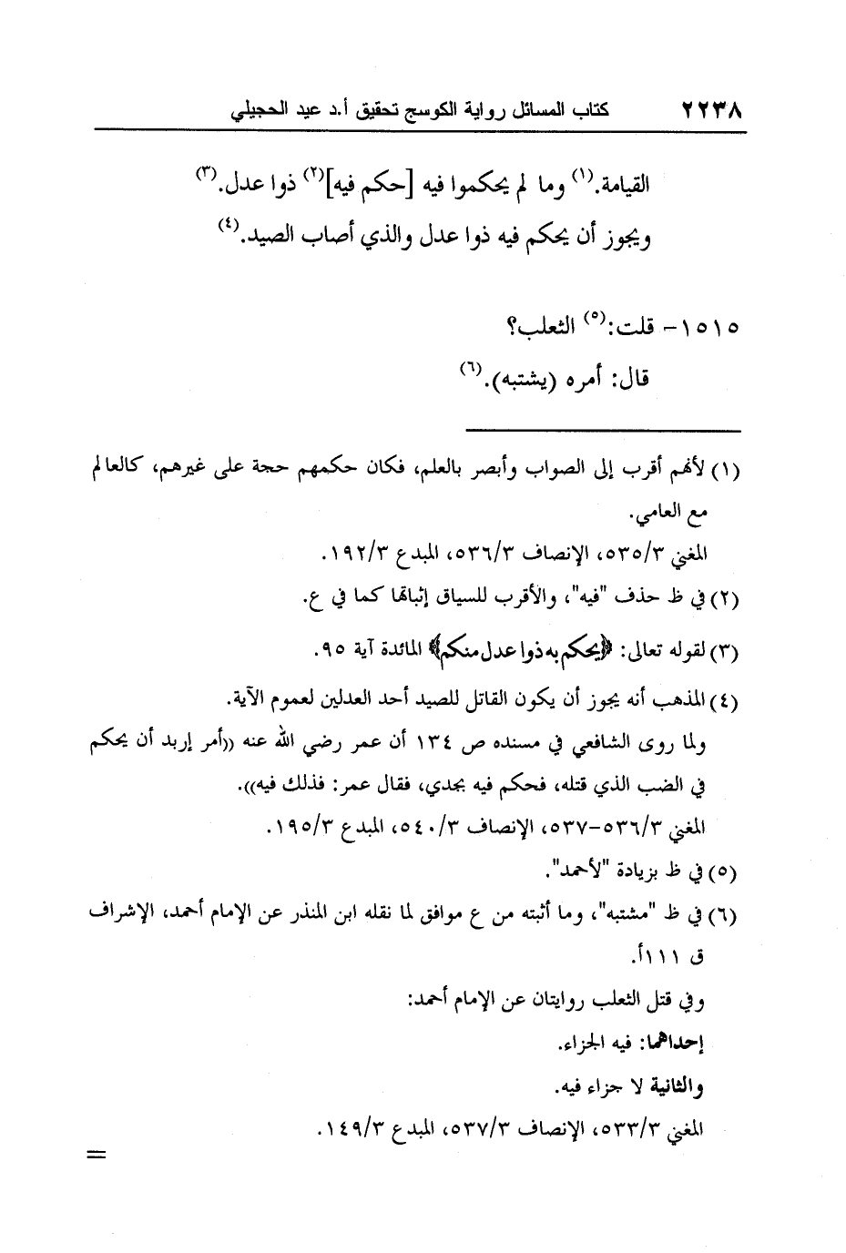 ولما روى الشافعي في مسنده ص 134 أن عمر رضي الله عنه "أمر إربد أن يحكم في الضب الذي قتله، فحكم فيه بجدي، فقال عمر: فذلك فيه".