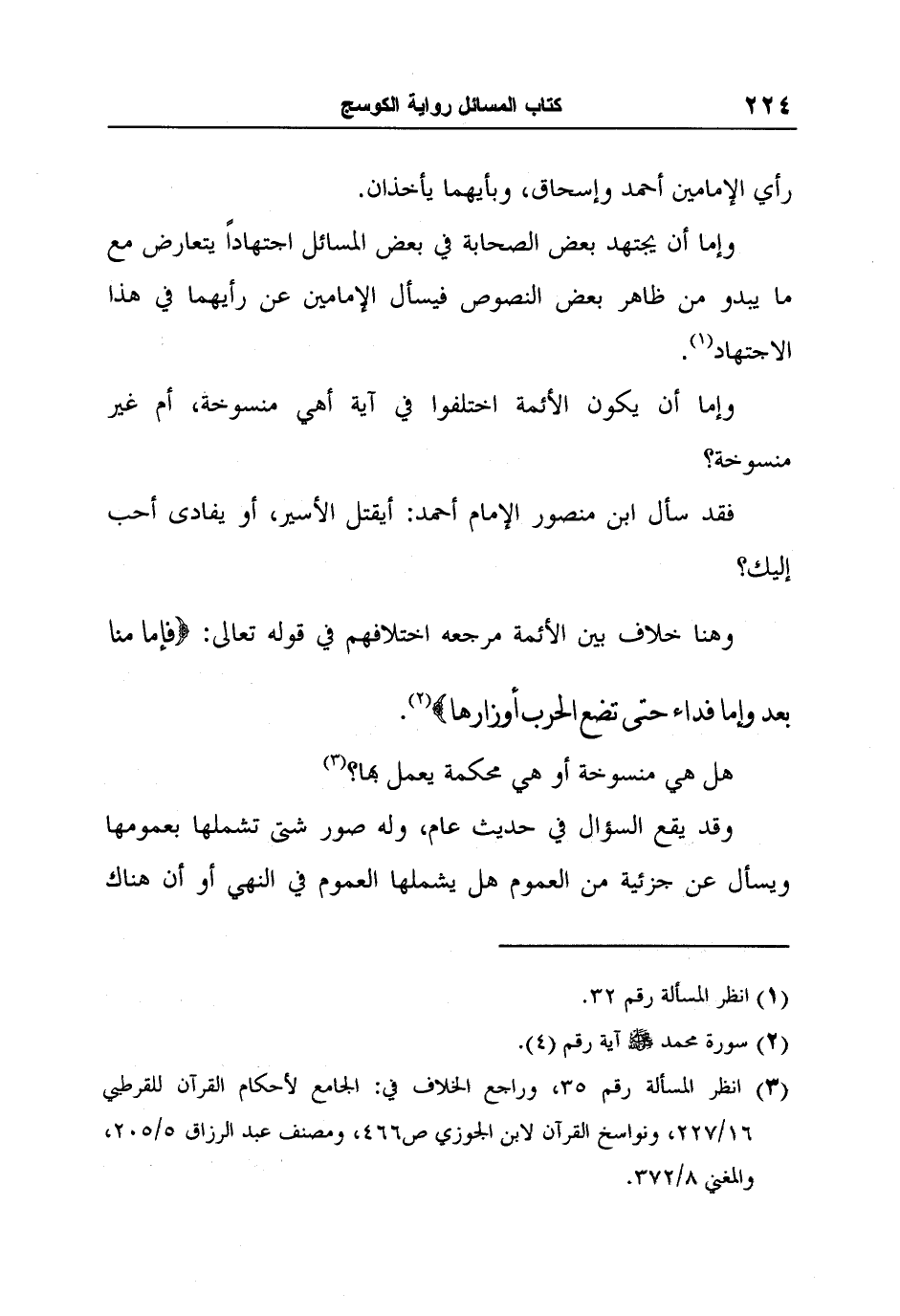 3 انظر المسألة رقم 35، وراجع الخلاف في: الجامع لأحكام القرآن للقرطبي 16/227، ونواسخ القرآن لابن الجوزي ص466، ومصنف عبد الرزاق 5/205، والمغني 8/372.