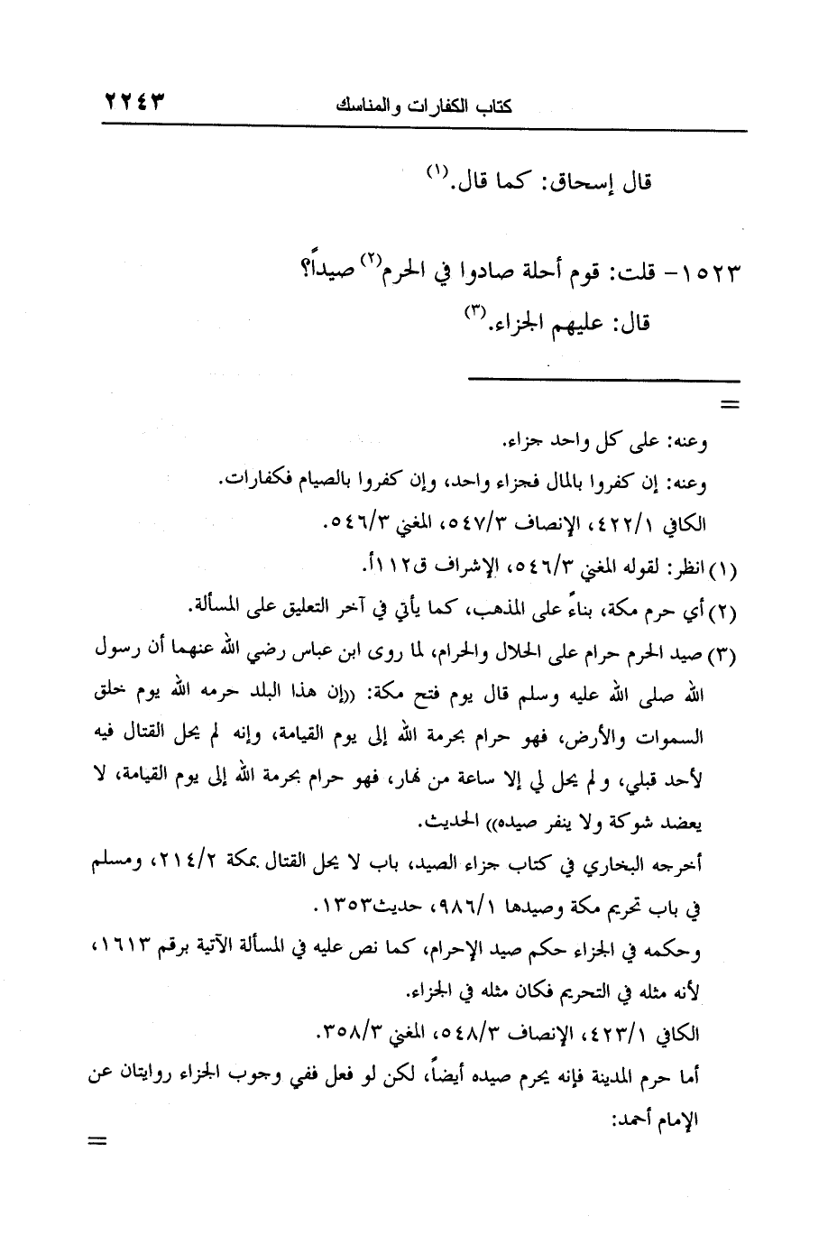 [1523-] قلت: قوم أحلة صادوا في الحرم2 صيداً؟