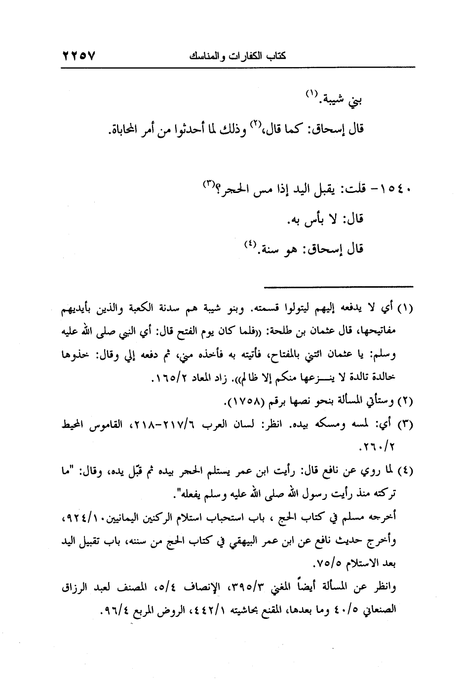 4 لما روي عن نافع قال: رأيت ابن عمر يستلم الحجر بيده ثم قبّل يده، وقال: "ما تركته منذ رأيت رسول الله صلى الله عليه وسلم يفعله".