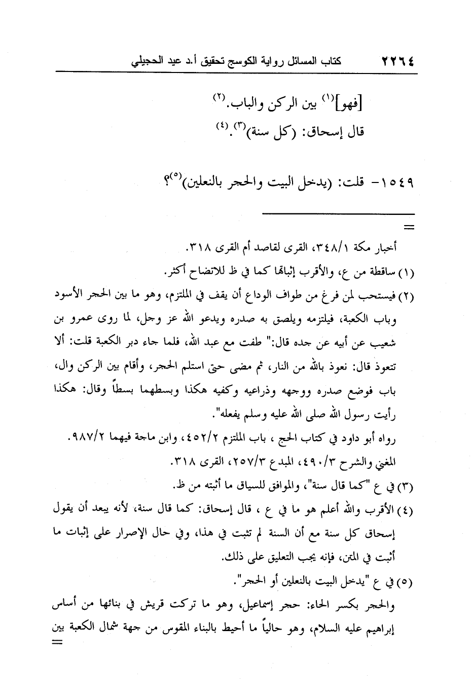 4 الأقرب والله أعلم هو ما في ع، قال إسحاق: كما قال سنة، لأنه يبعد أن يقول إسحاق كل سنة مع أن السنة لم تثبت في هذا، وفي حال الإصرار على إثبات ما أثبت في المتن، فإنه يجب التعليق على ذلك.
