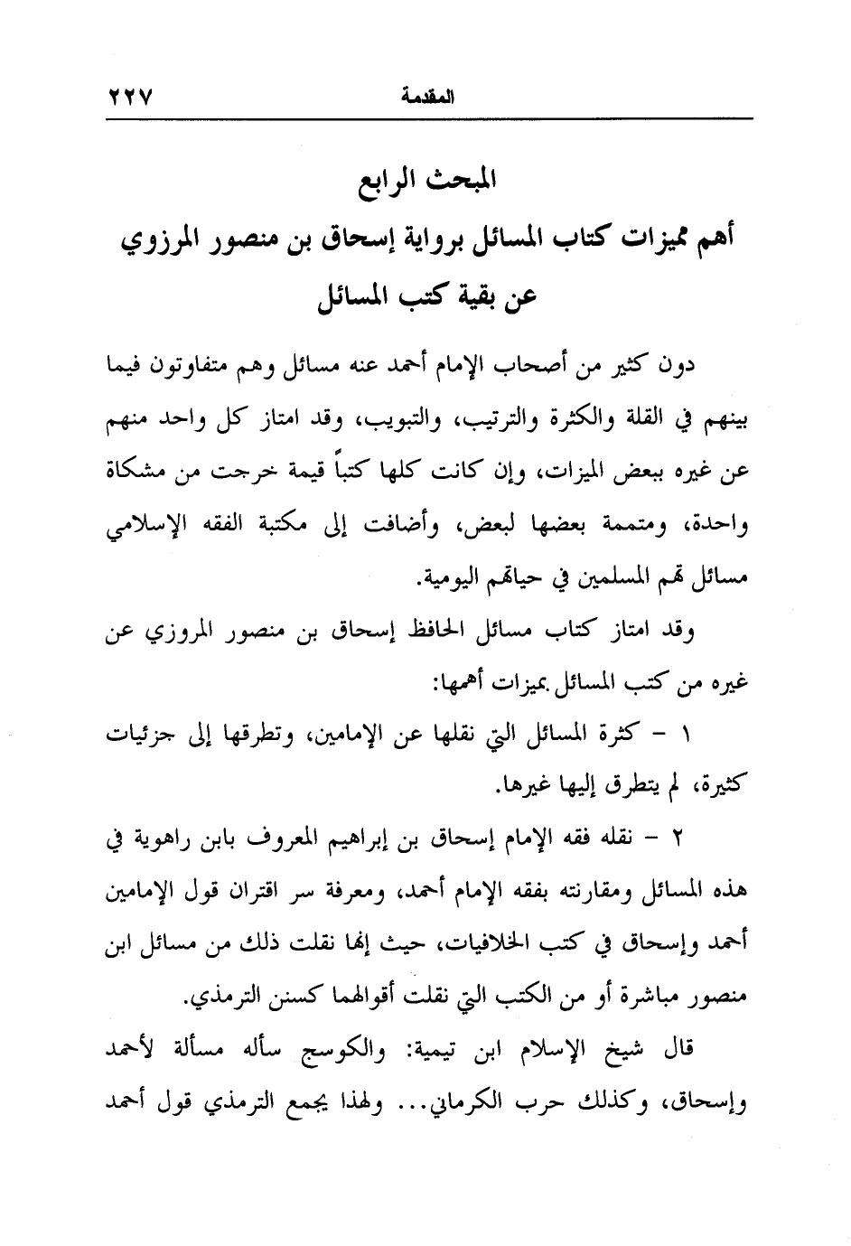 المبحث الرابع أهم مميزات كتاب المسائل برواية إسحاق بن منصور المرزوي عن بقية كتب المسائل