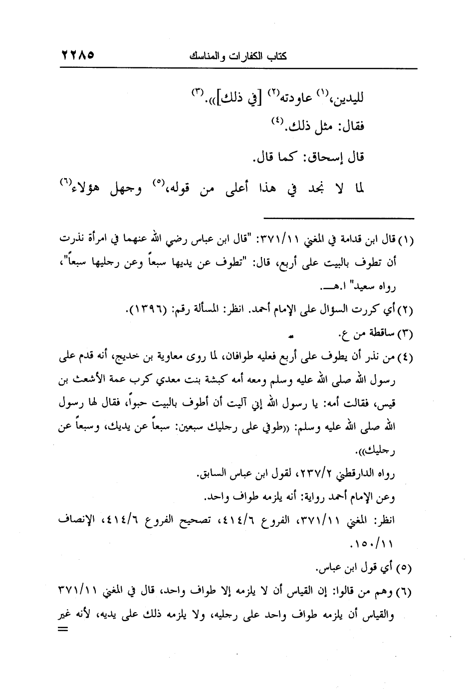 1 قال ابن قدامة في المغني 11/371: "قال ابن عباس رضي الله عنهما في امرأة نذرت أن تطوف بالبيت على أربع، قال: "تطوف عن يديها سبعاً وعن رجليها سبعاً"، رواه سعيد" ا. هـ.