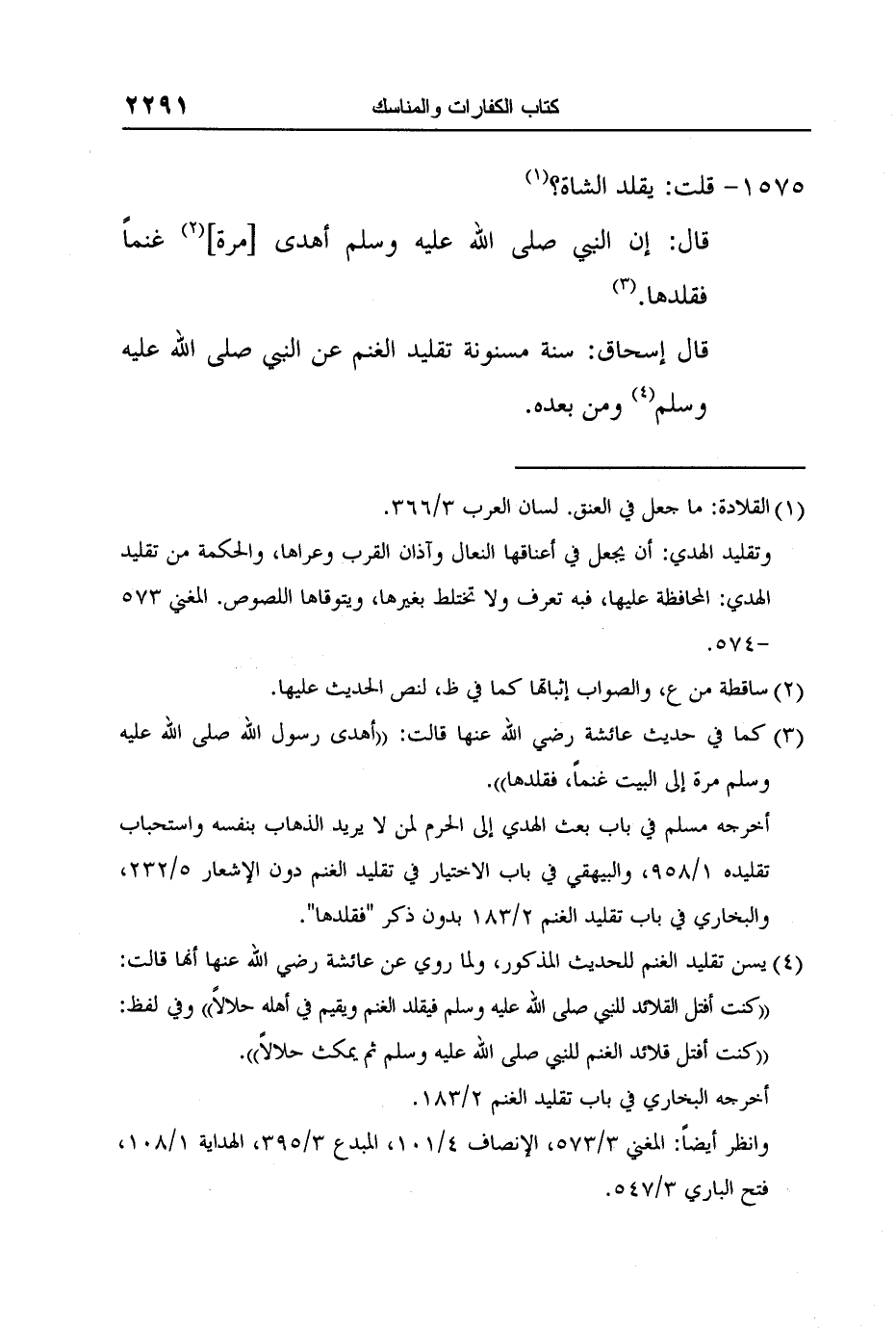 قال: إن النبي صلى الله عليه وسلم أهدى [مرة] 2 غنماً فقلدها.3