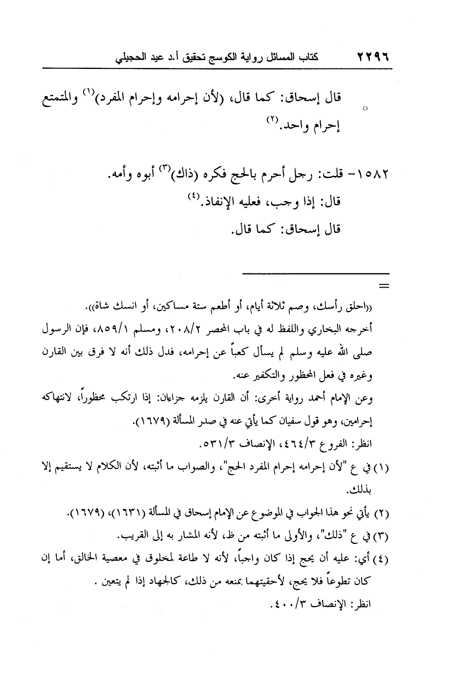 2 يأتي نحو هذا الجواب في الموضوع عن الإمام إسحاق في المسألة (1631) ، (1679) .