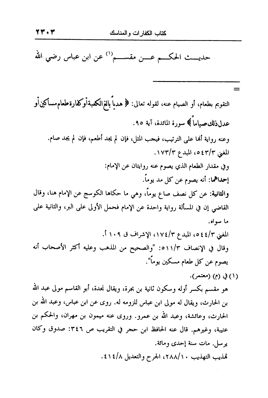 حديث الحكم عن مقسم1 عن ابن عباس رضي الله