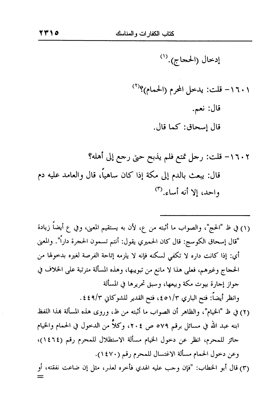 [1601-] قلت: يدخل المحرم (الحمام) ؟ 2