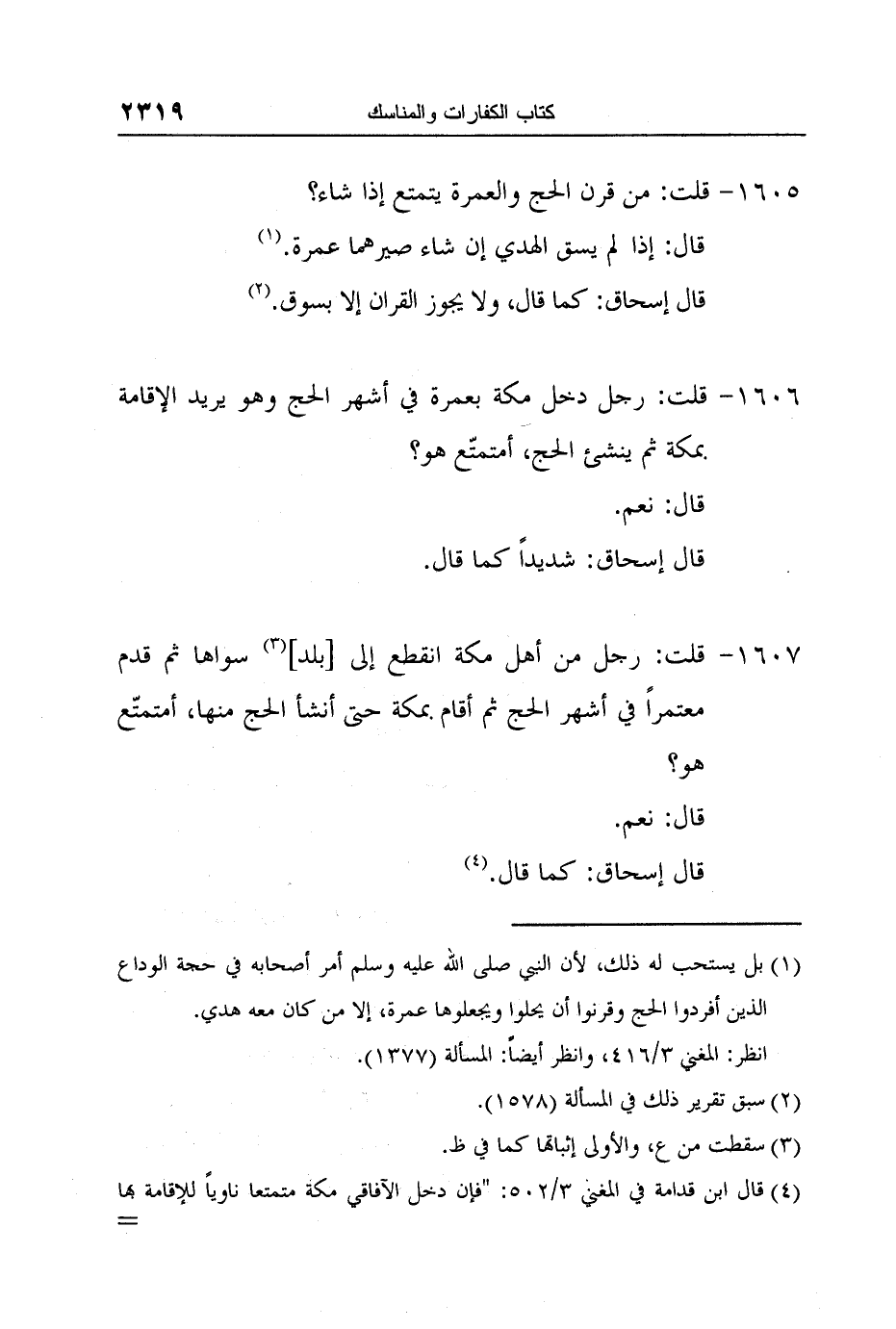 انظر: المغني 3/416، وانظر أيضاً: المسألة (1377) .