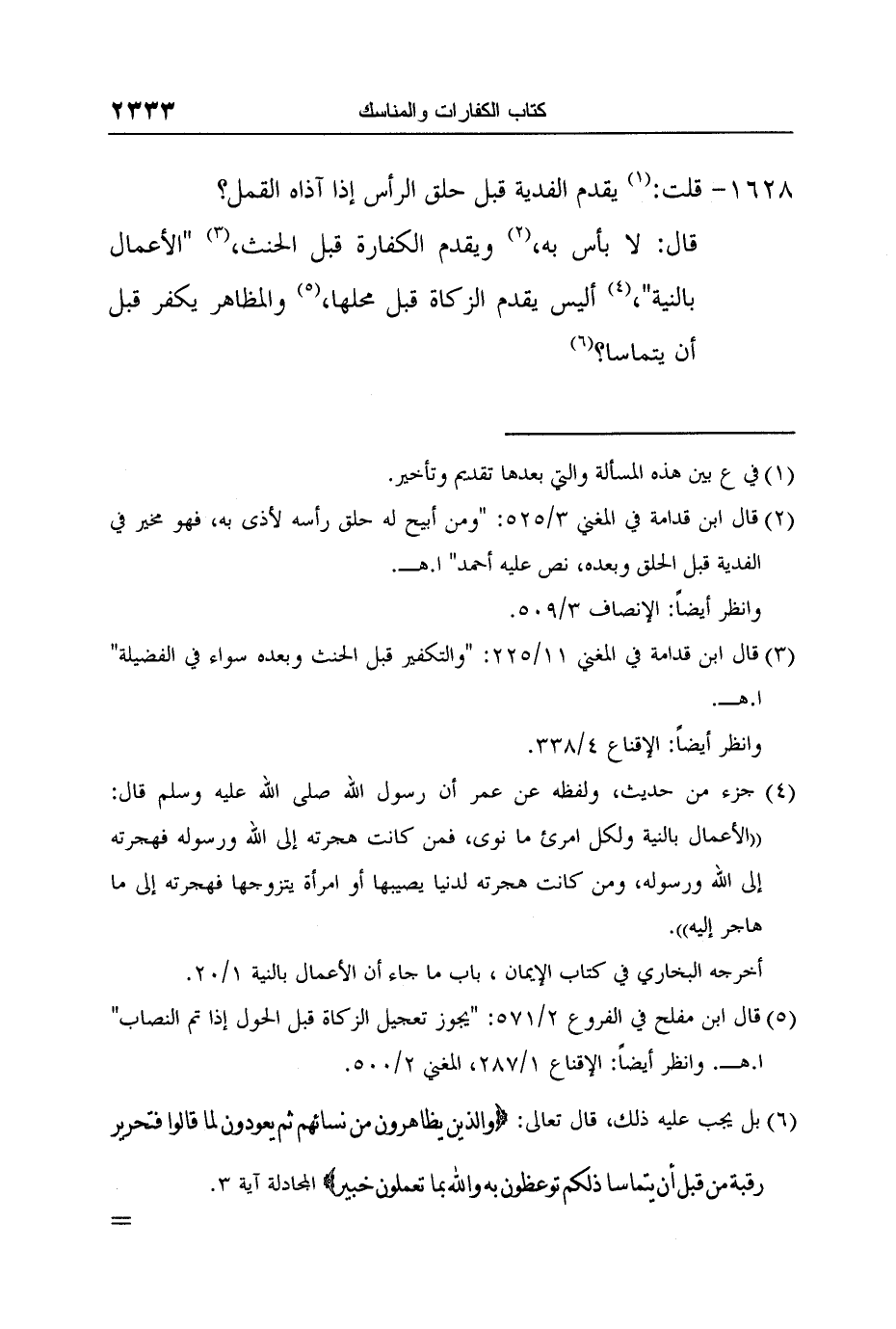 [1628-] قلت:1 يقدم الفدية قبل حلق الرأس إذا آذاه القمل؟
