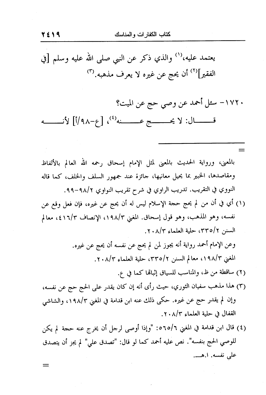 3 هذا مذهب سفيان الثوري، حيث رأى أنه إن كان يقدر على الحج حج عن نفسه، وإن لم يقدر حج عن غيره. حكى ذلك عنه ابن قدامة في المغني 3/198، والشاشي القفال في حلية العلماء 3/208.