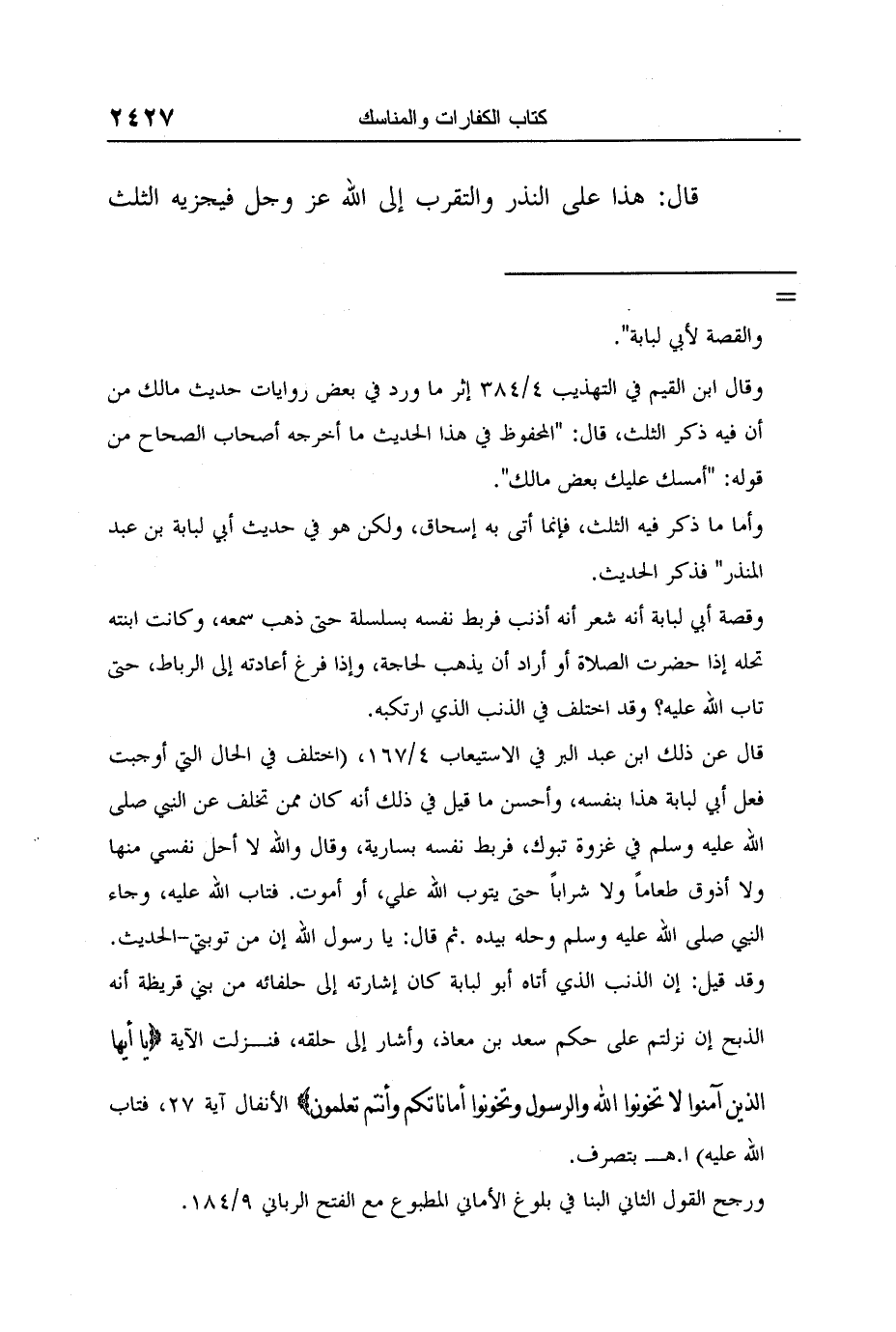 قال: هذا على النذر والتقرب إلى الله عز وجل فيجزيه الثلث