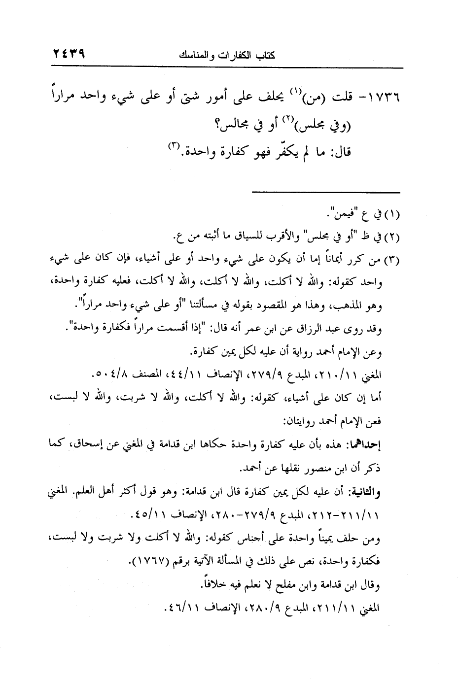 [1736-] قلت (من) 1 يحلف على أمور شتى أو على شيء واحد مراراً (وفي مجلس) 2 أو في مجالس؟