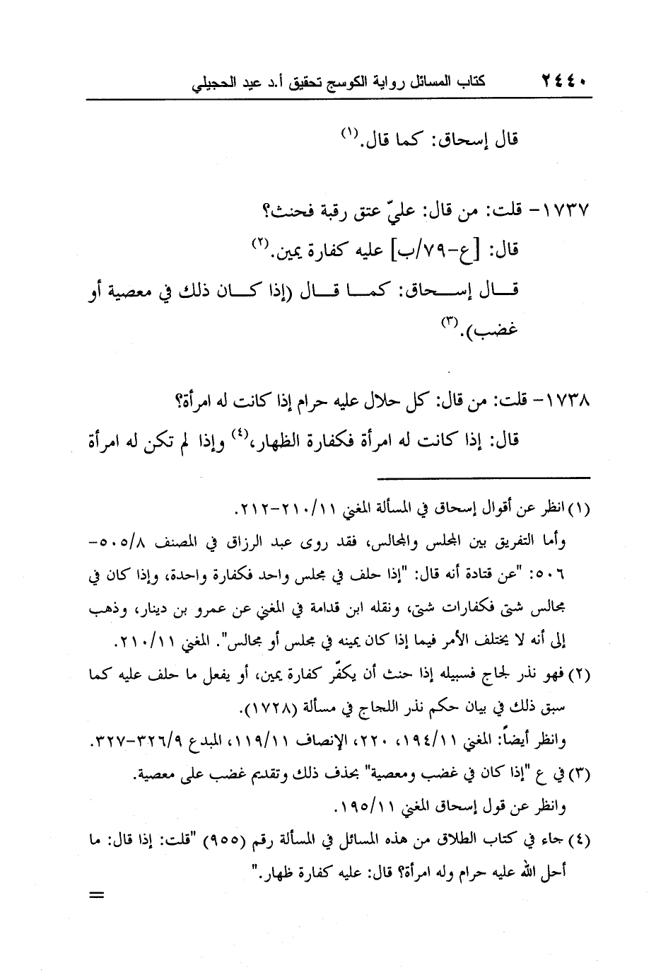 [1] انظر عن أقوال إسحاق في المسألة المغني 11/210-212.