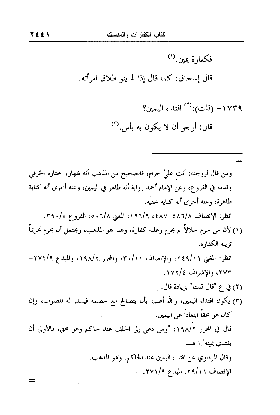 وقال المرداوي عن افتداء اليمين عند الحاكم، وهو المذهب.